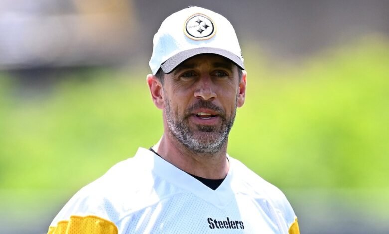 Aaron Rodgers at UPMC Rooney Sports Complex on June 11, 2025 in Pittsburgh, Pennsylvania. Joe Sargent/Getty Images