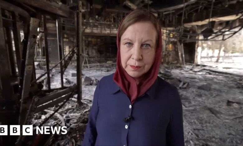 The BBC’s Chief International Correspondent Lyse Doucet reports from the ruins of an Iranian state TV building in Tehran.