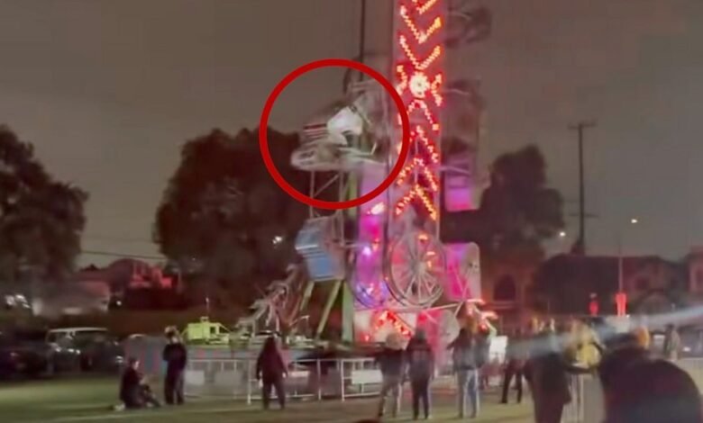 Funfair ride breaks apart at school event in LA