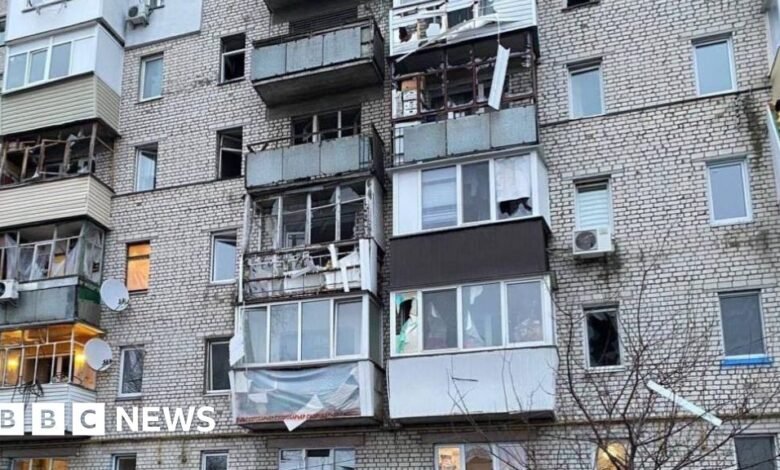 Mrs Grishko’s daughter, Alina Kalcheva, says the missile fell about 100m (328ft) from the building. “The blast wave damaged my mother’s balcony, windows, doors, and the interior of the apartment.”