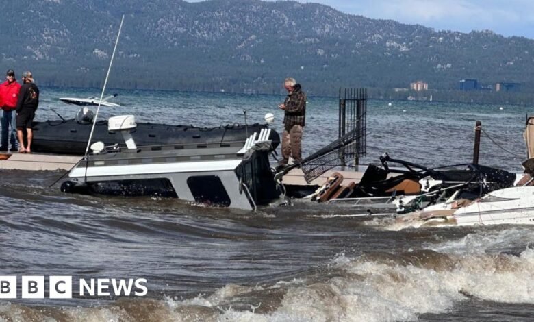 Ms Brigantino, who was visiting the popular alpine lake between California and Nevada with friends from Texas and California, watched as boats crashed into each other, ripping from their anchors and smashing onto shore. The howling winds that reached 35mph (56km/h) even brought in a brief snow.